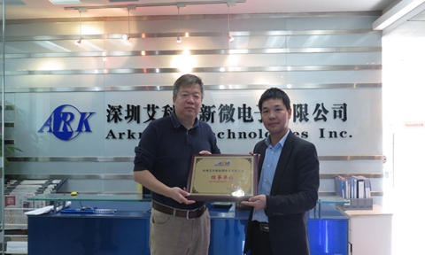 深圳艾科創新微電子有限公司首席執行官石嶺博士(左)汽車電子協會授牌