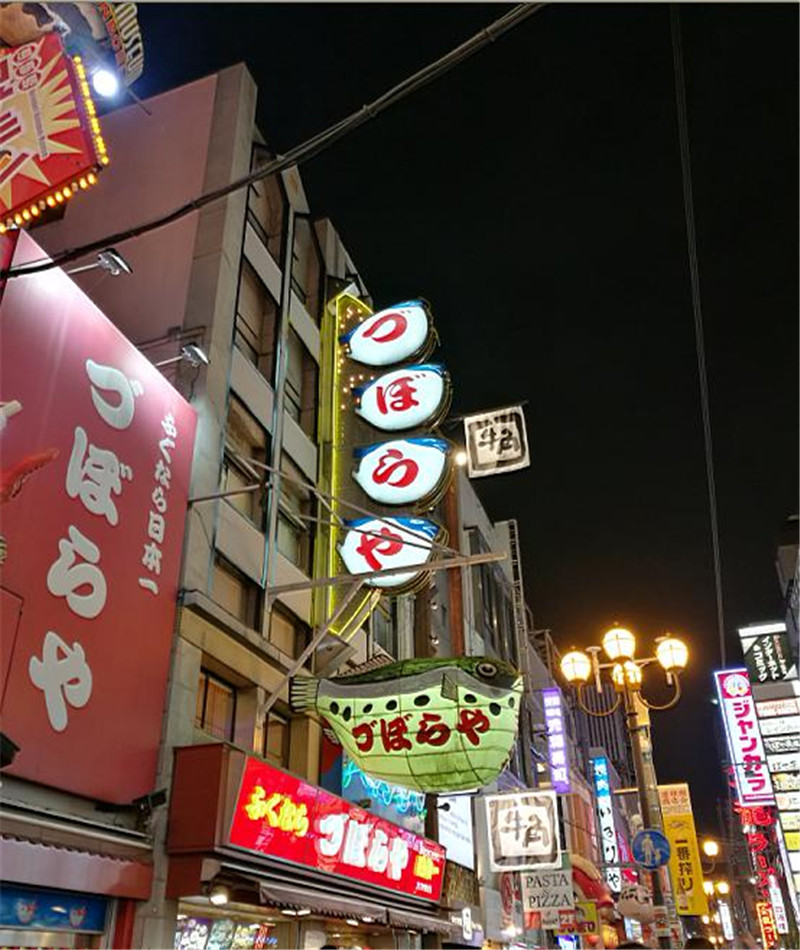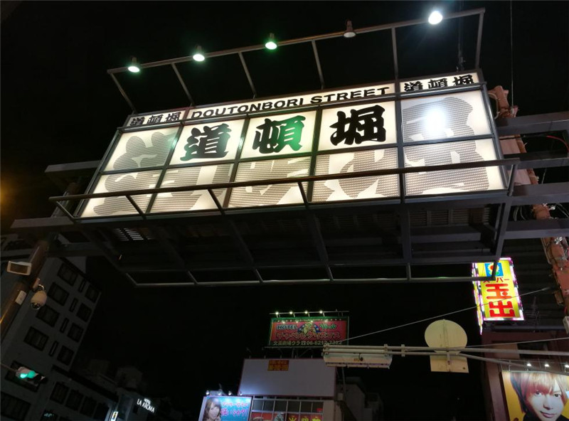 心齋橋 ,道頓崛美食街,大阪美食的代表地點(diǎn)。在這里各種美食的招牌每天都招來(lái)川流不息的人潮,最有名的大螃蟹招牌更是道頓崛美食街的標(biāo)志,尤其是當(dāng)夜晚來(lái)臨,閃爍的霓虹燈更是誘人。